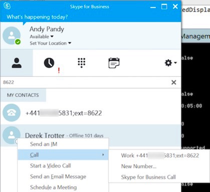Anyway, one thing I wanted to do was to turn on the ability to view extension numbers in the Skype client. What do I mean I hear you say – well, consider the normal display when I type in an extension number: